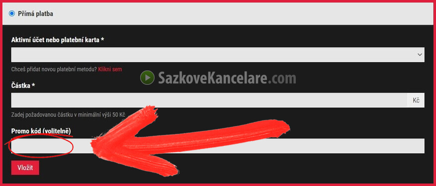 Info: 10.000 Kč za vklad + 1.000 Kč (500 BB + 500 Kč bez rizika) |