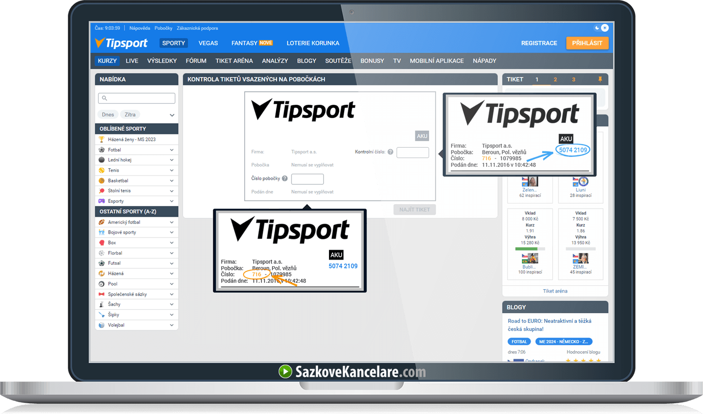 Kontrolu tiketu na sportovní (kurzové) sázky víte jednoduše realizovat na všech pobočkách sázkové kanceláře Tipsport.